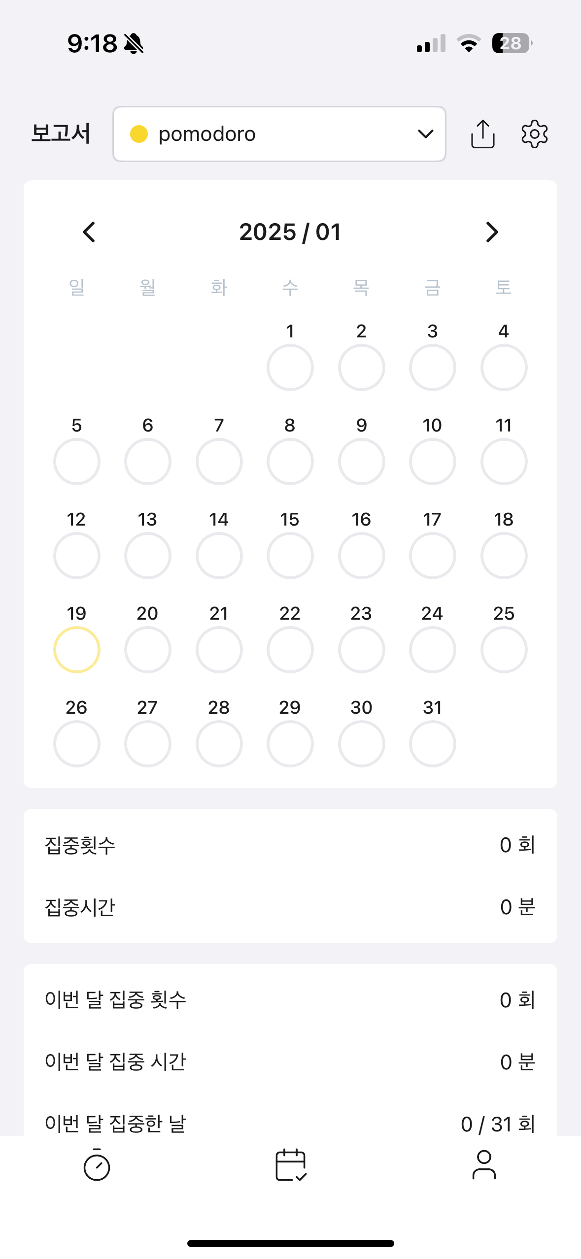 - 특히 이번 달 달력을 통해 하루하루 얼마나 집중했는지 한눈에 확인할 수 있어 목표 달성 여부를 쉽게 파악할 수 있습니다.